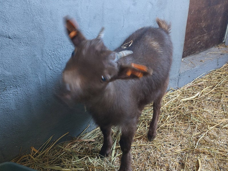 Mijn kleur is bruin met een klein beige vlek op mijn zij
